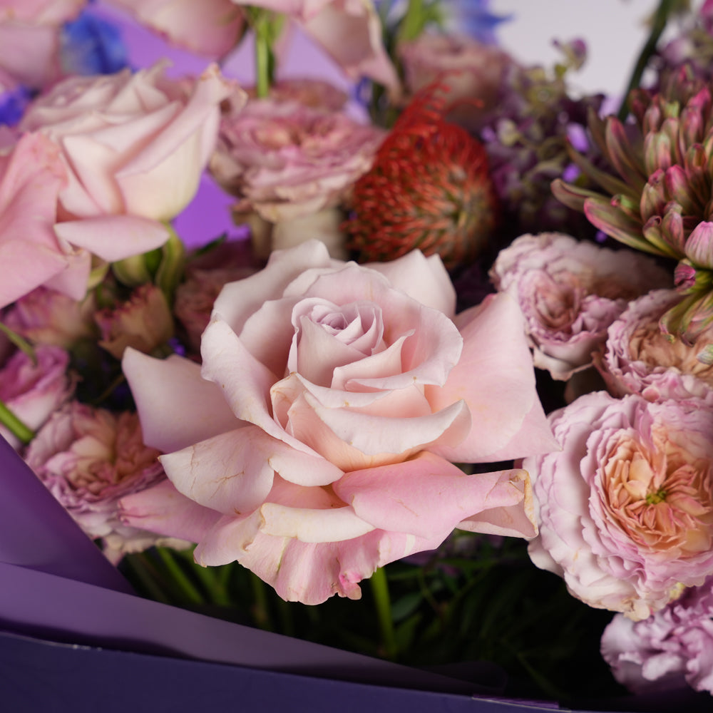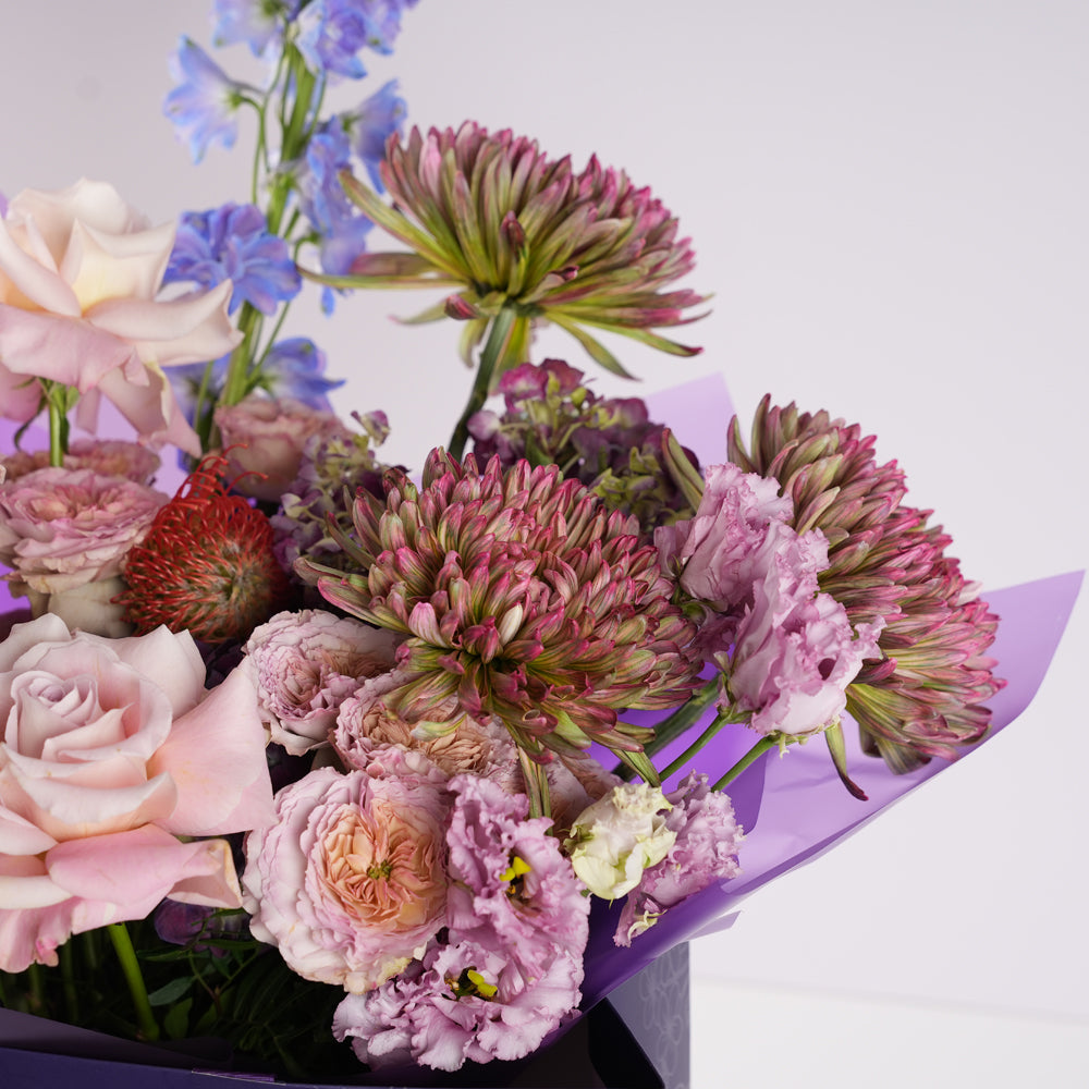 Please note: If a specific flower is unavailable, it will be substituted with an alternative of equal or greater value while preserving the overall style and colour palette. As with all natural flowers, slight variations may occur.